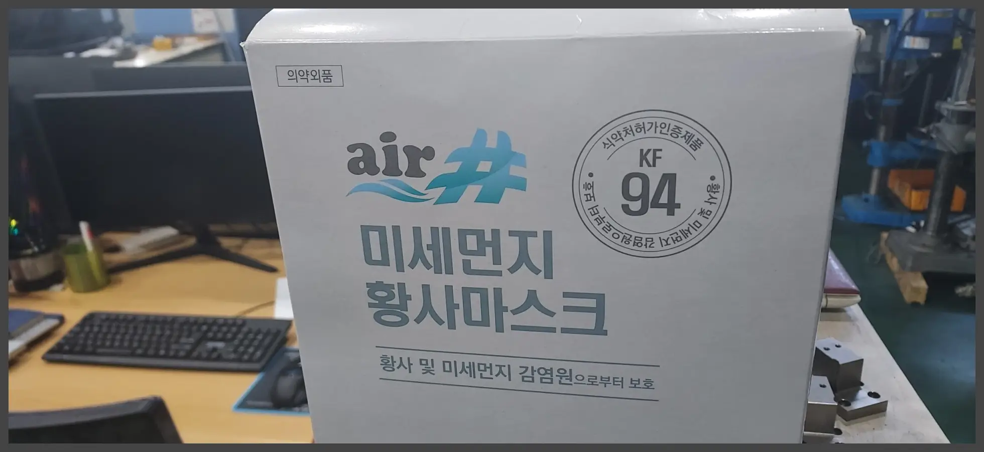 제가 다니는 회사는 마스크를 꼭 착용하고 일해야 됩니다. 어느 날 마스크 구매를 깜빡한 날이 있었는데, 사장님이 서랍 안에서 한통의 KF94 미세먼지 황사 마스크를 주셨습니다.